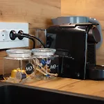 Die Zimmer sind außerdem mit einer voll ausgestatteten Küche ausgestattet.